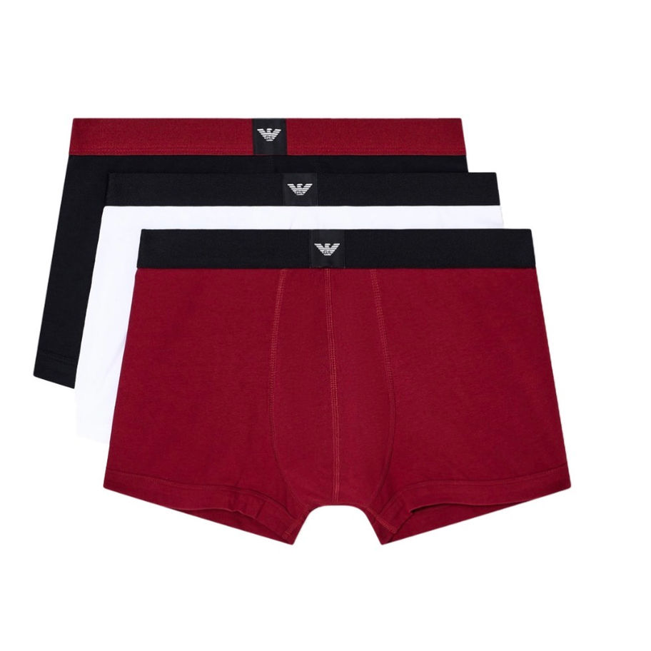 Boxer uomo Emporio Armani in tre diverse colorazioni: bordeaux, bianco, nero.